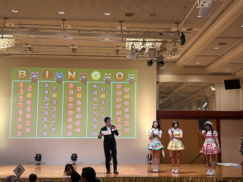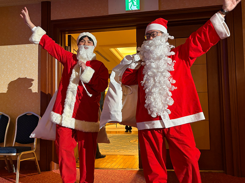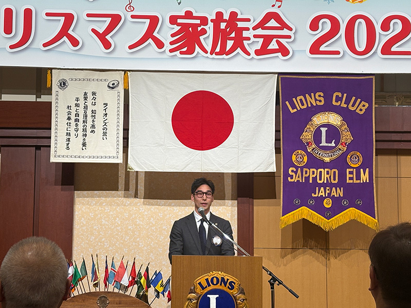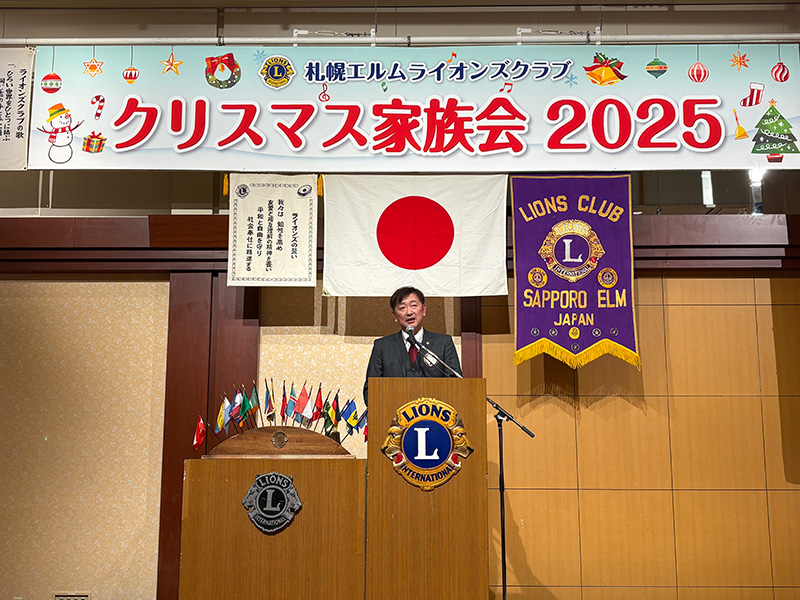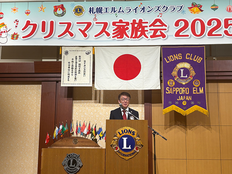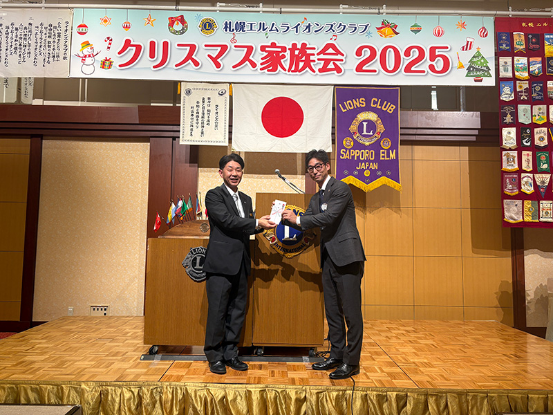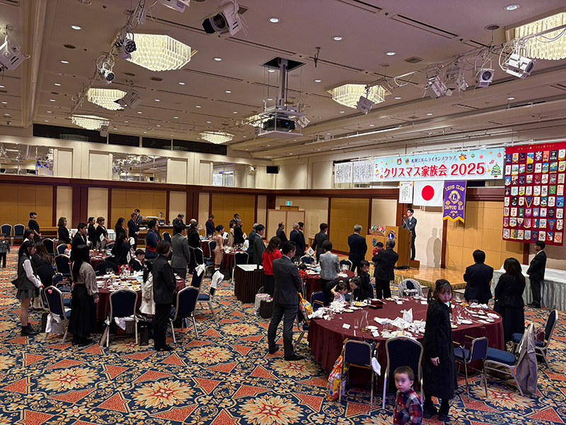 第1588回例会【札幌エルムライオンズクラブ Xmas 家族会】(2025年度第12回例会) 2025年12月16日 例会報告 【第一部 例会】 開会宣言・ゴング L大和田訓弘 【第一部 例会】 ライオンズの誓い L菅原聡太郎 【第一部 例会】 札幌グランドホテル様への御礼 L大和田訓弘 【第二部 祝宴】 開会の挨拶 実行委員長 L塚原成佳 【第二部 祝宴】 司会進行 L春木崇(右)L松岡孝幸(左) 【第二部 祝宴】 ウィサーブ L冨田茂博 【第二部 祝宴】 サンタクロースから子供達へのプレゼント 【第二部 祝宴】 6役アトラクション お風呂キャンセル界隈 【第二部 祝宴】 アトラクション 「北海道を拠点に活動するアイドルグループのフルーティー」 アイドルの生ステージに熱狂です。 子供達もステージへ・・・?一部大人も混じっています。 実行委員長 L塚原成佳しっかりセンターを奪っておりました。 グッズ販売にて購入特典の写真撮影。良い笑顔です。 【第二部 祝宴】 ビンゴゲーム 司会 L甚野章吾 フルーティーの方々 豪華景品の一部 たくさんの方にご参加頂きました。 【第二部 祝宴】 閉会の挨拶 副実行委員長 L吉中法雅 最後はみんなでお見送り おまけ フルーティーの方々と写真撮影 ◀ 第1587回例会(2025年度第11回例会) 第1589回例会(2025年度第13回例会) ▶